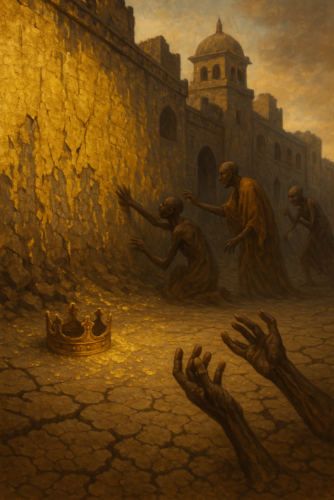 The king feared being forgotten more than death. To prove his greatness, he ordered his palace walls painted in pure gold. Each brick blazed under the sun. Travelers marveled, poets praised, rivals grew envious. But beyond the palace gates, the…
