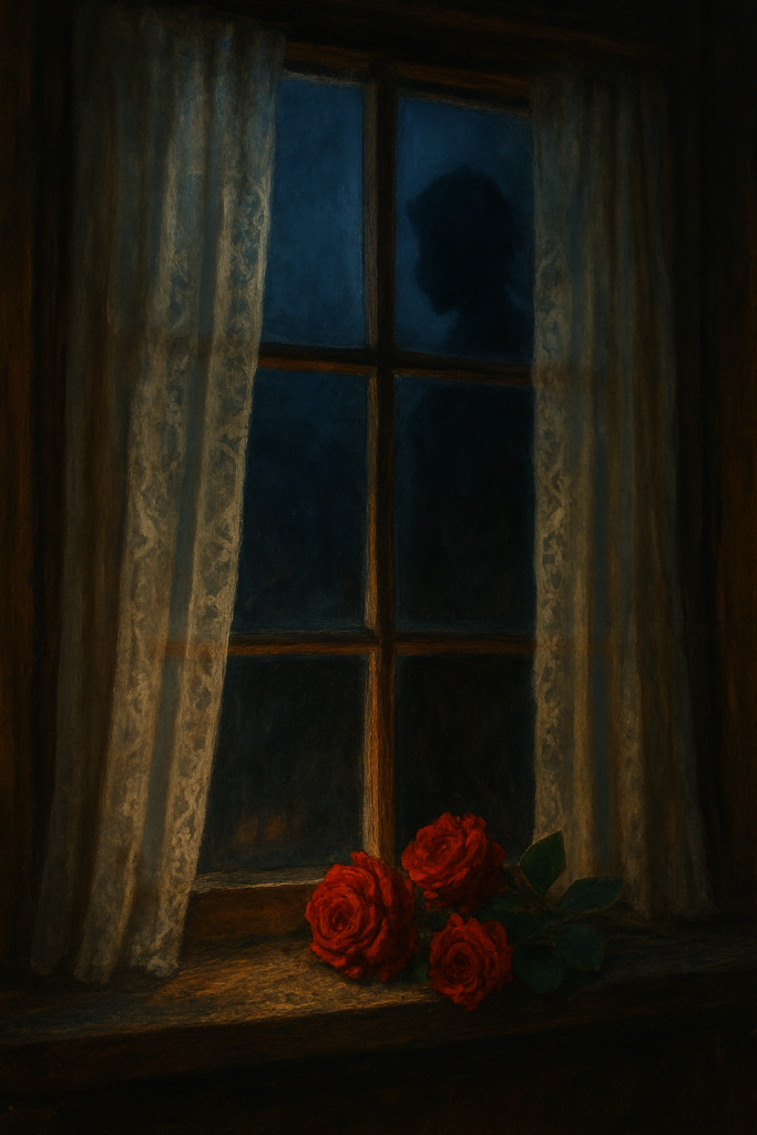 In the hidden quarters of the city lived a courtesan whose eyes carried storms and whose roses perfumed the air long before her voice was heard. He visited her, always at midnight, always in shadow. They never spoke of love. They only shared the silence between their bodies.