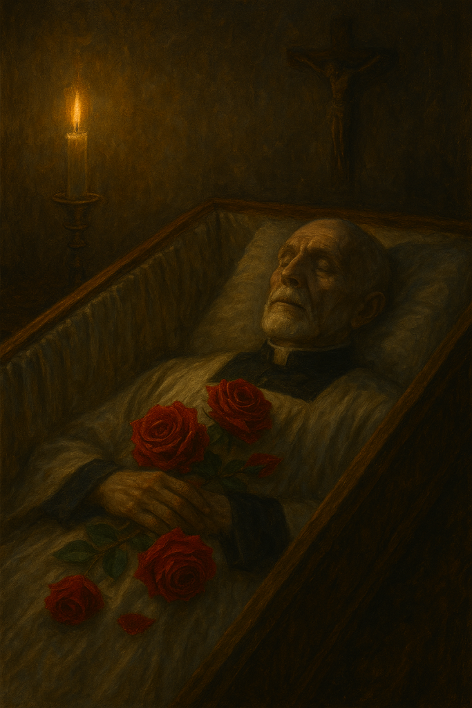 Years passed, and he grew old. His sermons remained fiery, his hands remained steady. To the world, he was unshaken. But on his deathbed, as his eyes dimmed, the townsfolk buried him with roses, not lilies. Roses. Red, fragrant, undeniable.